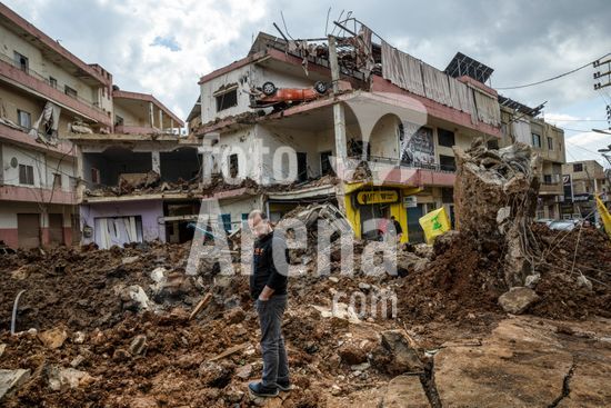 ny070326120511 A man walks the perimeter of a massive crater left by an Israeli airstrike that also blew a vehicle onto a third-story patio above, in the village of Nabi Chit, Lebanon on Saturday, March 7, 2026. Overnight, Israeli warplanes repeatedly bombarded the southern outskirts of Beirut, where the IDF had ordered hundreds of thousands of residents to flee; More than 200 people in Lebanon have been killed, according to the national health ministry. (David Guttenfelder/The New York Times/Fotoarena)