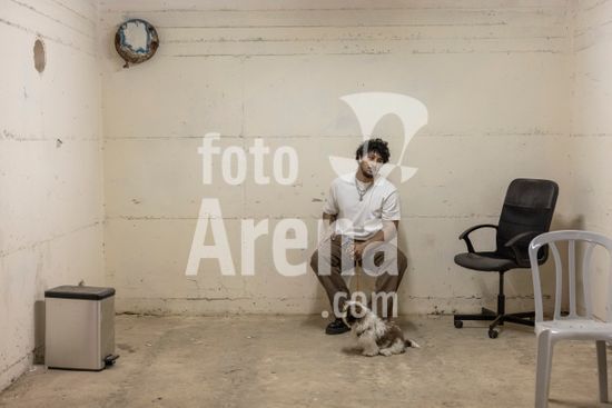 ny080326145612 A man sits with his dog inside a shelter in Netanya, Israel, Sunday, March 8, 2026, as a siren warns of incoming missiles from Iran. (Avishag Shaar-Yashuv/The New York Times/Fotoarena)