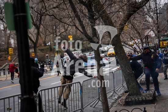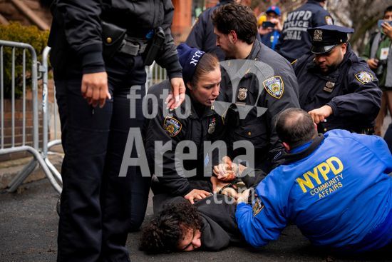 ny090326162213 A man is detained after he was seen throwing an incendiary device at a protest near Gracie Mansion in Manhattan on Saturday, March 7, 2026. For two hours on Saturday, the streets around Gracie Mansion became the stage for a heated protest, reflecting a nation seething with angst and unease. (Vincent Alban/The New York Times/Fotoarena)