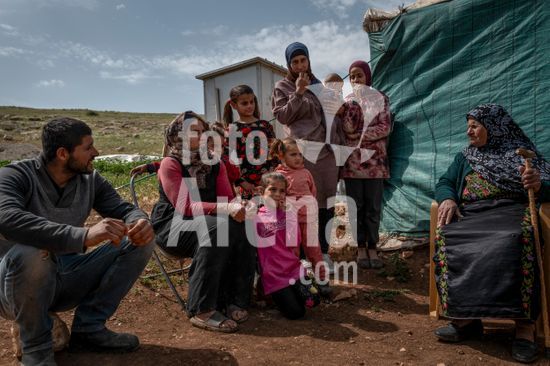 ny180326185713 Suhaib Abualkebash, left, with his sister-in-law, Nihaya, seated; his wife, Niama, standing and holding their daughter Manar; and another daughter, several nieces and an aunt, in Khirbet Humsa, West Bank, Wednesday, March 18, 2026. All but the aunt, who was not present during the attack, said they were assaulted by Israeli settlers. (Afif Amireh/The New York Times/Fotoarena)