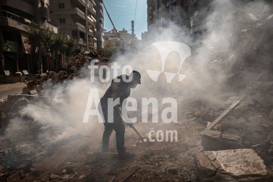 ny190426145911 A man clears debris on a building destroyed by airstrikes at the Hay El Sellom neighborhood of Beirut, Lebanon, following the announcement of a ceasefire, on Sunday, April 19, 2026. (Diego Ibarra Sánchez/The New York Times/Fotoarena)