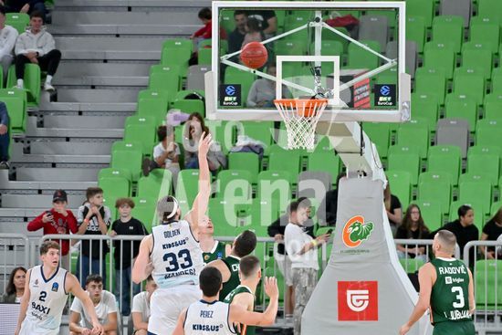 2816710 Ljubljana, Eslovênia, 1º de outubro de 2025, Green Ladies durante a partida de basquete BKT EuroCup entre Cedevita Olimpija (Eslovênia) e BAXI Manresa (Espanha) na Arena Stozice, Ljubljana, Eslovênia. (Foto de Igor Kupljenik/Sports Press Photo)