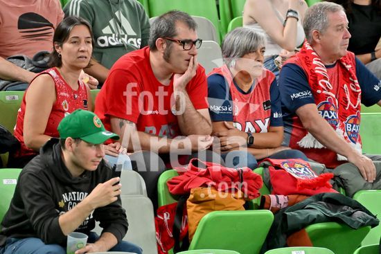 2816711 Ljubljana, Eslovênia, 1º de outubro de 2025, fãs do BAXI Manresa durante a partida de basquete BKT EuroCup entre Cedevita Olimpija (Eslovênia) e BAXI Manresa (Espanha) na Arena Stozice, Ljubljana, Eslovênia. (Foto de Igor Kupljenik/Sports Press Photo)