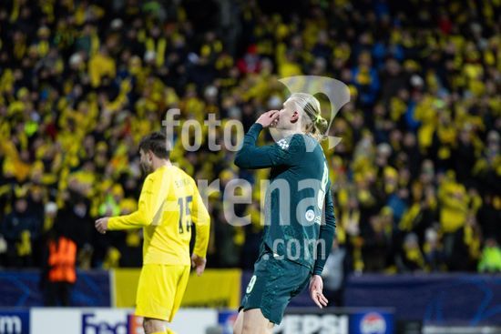 2870753 Erling Haaland (9 Man City) demonstra desanimo durante a partida de futebol da Liga dos Campeoes da UEFA entre Bodo/Glimt e Manchester City no estadio Aspmyra, em Bodo, Noruega. (Ane Frosaker / SPP)