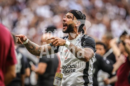 2878429 jogador Memphis Depay agradecendo para a torcida do Corinthias no Estadio Mané Garrincha, em Brasilia, após o termino do jogo contra o Flamengo na Supercopa Rei, onde o Corinthias vence a partida tornando-se campeão.