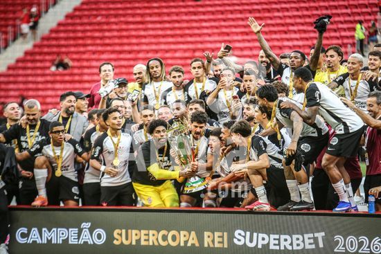 2878573 Time do Corinthias sendo premiado e festejando a vitória como Campeão da Supercopa Rei de 2026, realizado no Estadio Mané Garrincha em Brasilia.