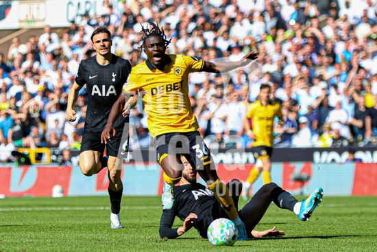 2931477 WOLVERHAMPTON, INGLATERRA - 25 de abril: Rodrigo Bentancur, do Tottenham, disputa a bola com Mateus Mane, do Wolves, durante a partida da Premier League entre Wolverhampton Wanderers e Tottenham Hotspur, no estadio Molineux, em 25 de abril de 2026, em Wolverhampton, Inglaterra. (Natalie Mincher/SPP)