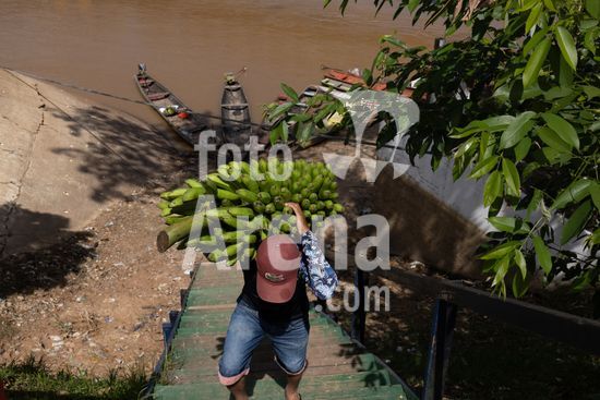 2842281 Homem carrega cachos de fruta no município de Eirunepé, cidade localizada sul do Amazonas.