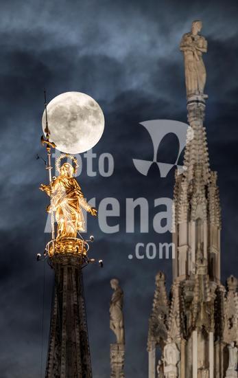 1028_14_CBO2129 Supermoon at Duomo di Milano. Lombardy. Italy. Europe. (Photo by: Carlo Borlenghi/REDA&CO)