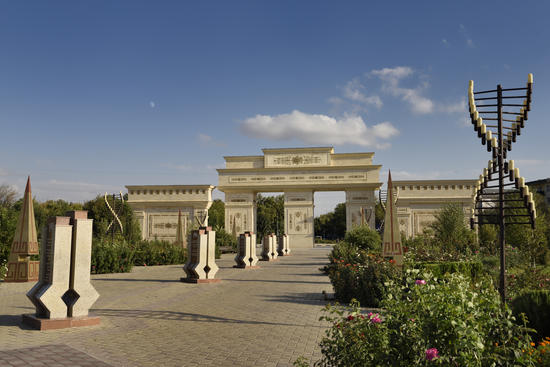 4036_rf_14_409 ind park 3 Gates to Independence Park Shymkent Kazakhstan with moon and rose flower gardens