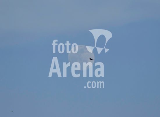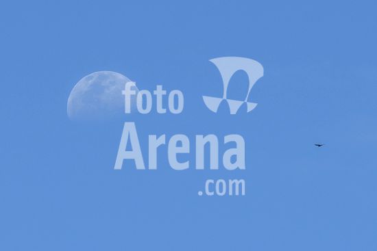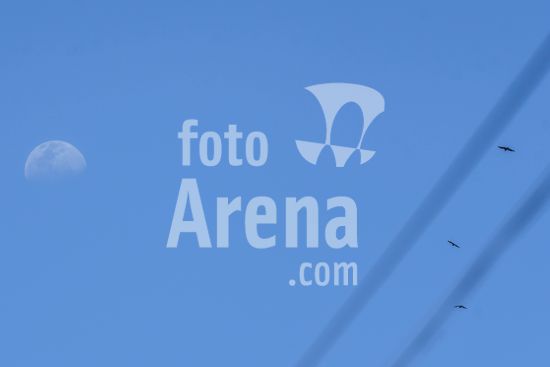 2407766 Lua e pássaros no céu azul.