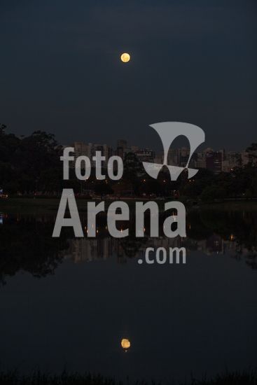 2618172 Lua cheia sobre skyline refletida no lago do Ibirapuera.
