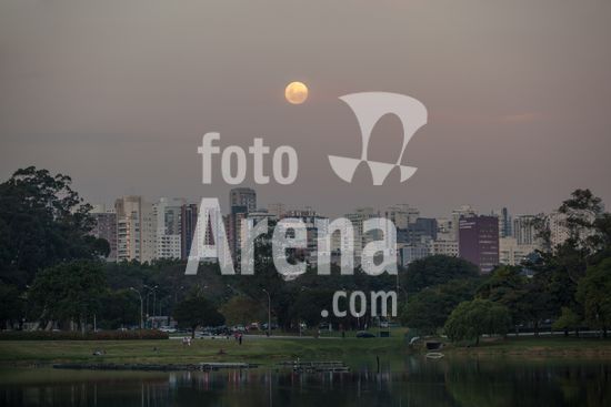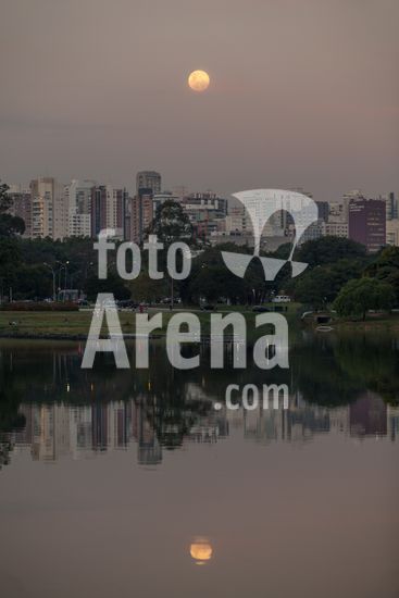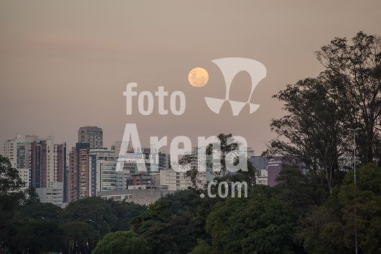 2618162 Lua cheia sobre skyline vista a partir do parque do Ibirapuera.