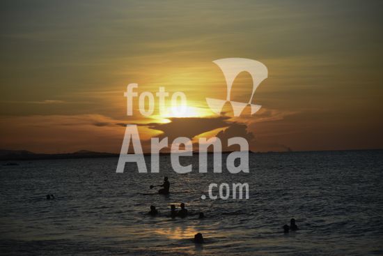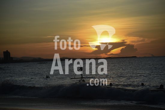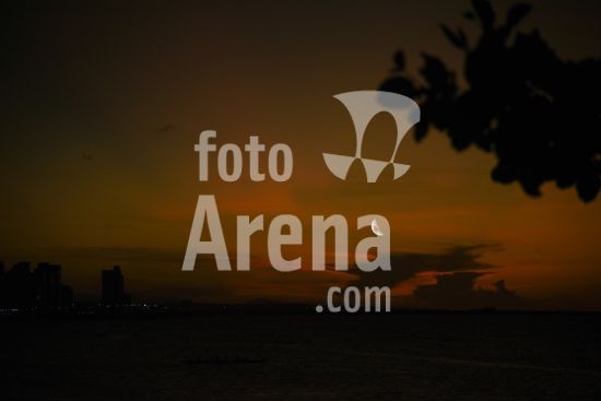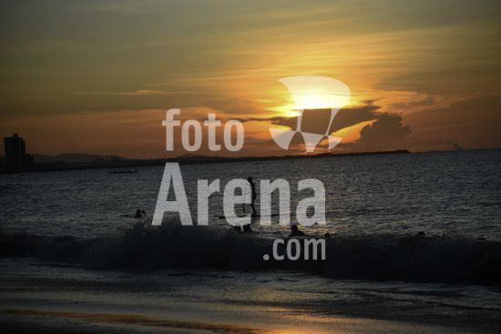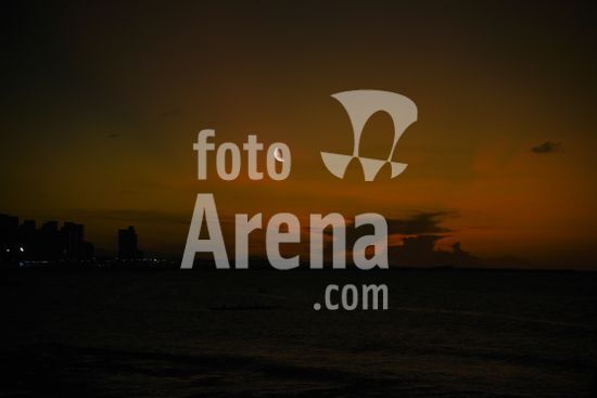2732733 Pôr do Sol e lua vistas na praia da avenida Beira-Mar, em Fortaleza, capital cearense.