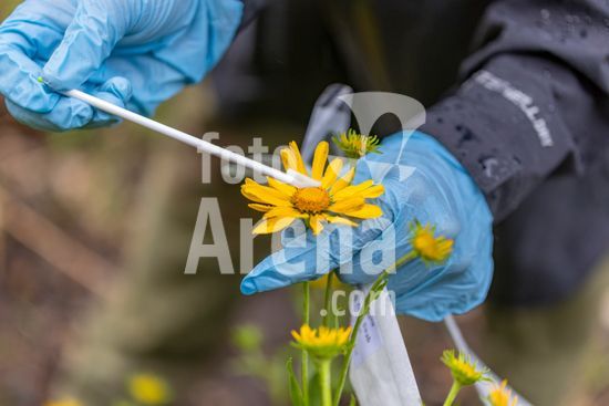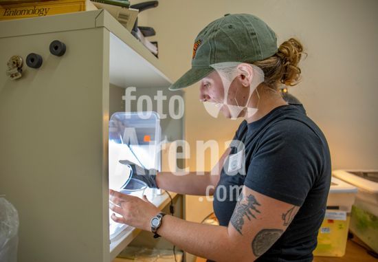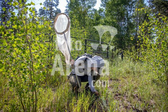 Quin Baine, the invertebrate species survival specialist at the New Mexico BioPark Society, assesses whether an insect caught was a bumblebee at the Sleepy Grass Campground in the Lincoln National Forest outside of Cloudcroft, N.M., July 9, 2025. Although the Sacramento Mountains checkerspot butterfly was the focus of the survey, the team was concerned by a lack of bumblebees present. (Diana Cervantes/The New York Times/Fotoarena)