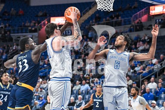 58006563 NOVEMBER 25, 2024: Saint Louis Billikens forward Kalu Anya (6) grabs the rebound in a regular season game where the Quinnipiac Bobcats visited the Saint Louis Billikens. Held at Chaifetz Arena in St. Louis, MO on Monday November 25, 2024 Richard Ulreich/CSM/Sipa USA (Credit Image: © Richard Ulreich/Cal Sport Media/Sipa USA) (Credit Image: © Richard Ulreich/Cal Sport Media/Sipa USA)