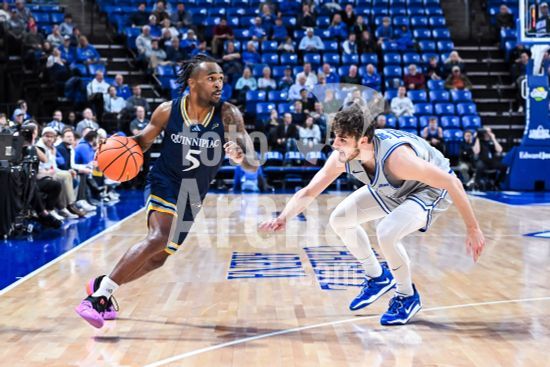 58006607 NOVEMBER 25, 2024: Quinnipiac Bobcats guard Doug Young (5) cut quickly against the defense of Saint Louis Billikens guard Gibson Jimerson (24) in a regular season game where the Quinnipiac Bobcats visited the Saint Louis Billikens. Held at Chaifetz Arena in St. Louis, MO on Monday November 25, 2024 Richard Ulreich/CSM/Sipa USA (Credit Image: © Richard Ulreich/Cal Sport Media/Sipa USA) (Credit Image: © Richard Ulreich/Cal Sport Media/Sipa USA)