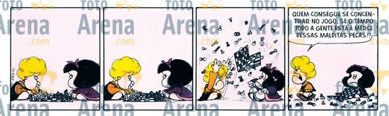 col1556pt TIRA MAFALDA, CÓDIGO ORIGINAL 1556, PORTUGUES, EDIÇÕES MARTINS FONTES.DiálogoSusanita: Quem consegue se concentrar no jogo, se o tempo todo a gente está à mercê dessas malditas peças!!As tiras da Mafalda, coloridas em português (com gramática atualizada), foram cedidas pela © Martins Editora Livraria Ltda. para licenciamento através da Fotoarena. Foram colorizadas pela editora Glénat.