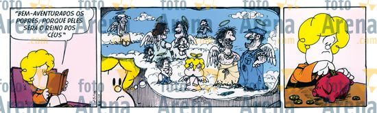 col1574pt TIRA MAFALDA, CÓDIGO ORIGINAL 1574, PORTUGUES, EDIÇÕES MARTINS FONTES.DiálogoSusanita: "Bem-aventurados os pobres, porque deles será o reino dos céus".As tiras da Mafalda, coloridas em português (com gramática atualizada), foram cedidas pela © Martins Editora Livraria Ltda. para licenciamento através da Fotoarena. Foram colorizadas pela editora Glénat.