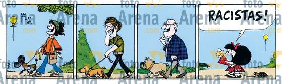 col1638pt TIRA MAFALDA, CÓDIGO ORIGINAL 1638, PORTUGUES, EDIÇÕES MARTINS FONTES.DiálogoMafalda: RACISTAS!As tiras da Mafalda, coloridas em português (com gramática atualizada), foram cedidas pela © Martins Editora Livraria Ltda. para licenciamento através da Fotoarena. Foram colorizadas pela editora Glénat.