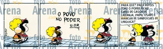 col1654pt TIRA MAFALDA, CÓDIGO ORIGINAL 1654, PORTUGUES, EDIÇÕES MARTINS FONTES.Diálogo"O povo no poder" U.J.R.Susanita: Para quê? Para depois todo o poder ficar cheio de casca de laranja, papel usado e mancha de sanduíches de linguiça?As tiras da Mafalda, coloridas em português (com gramática atualizada), foram cedidas pela © Martins Editora Livraria Ltda. para licenciamento através da Fotoarena. Foram colorizadas pela editora Glénat.