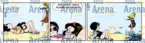 col1677pt TIRA MAFALDA, CÓDIGO ORIGINAL 1677, PORTUGUES, EDIÇÕES MARTINS FONTES.DiálogoMafalda: Que graça, com o filhinho em cassete!As tiras da Mafalda, coloridas em português (com gramática atualizada), foram cedidas pela © Martins Editora Livraria Ltda. para licenciamento através da Fotoarena. Foram colorizadas pela editora Glénat.