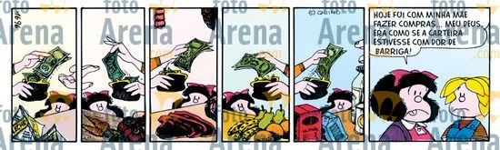 col1696pt TIRA MAFALDA, CÓDIGO ORIGINAL 1696, PORTUGUES, EDIÇÕES MARTINS FONTES.DiálogoMafalda: Hoje fui com minha mãe fazer compras. Meu deus, era como se a carteira estivesse com dor de barriga!As tiras da Mafalda, coloridas em português (com gramática atualizada), foram cedidas pela © Martins Editora Livraria Ltda. para licenciamento através da Fotoarena. Foram colorizadas pela editora Glénat.
