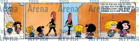 col1729pt TIRA MAFALDA, CÓDIGO ORIGINAL 1729, PORTUGUES, EDIÇÕES MARTINS FONTES.DiálogoMiguelito: Não sei por que, mas às vezes me pega aqui por dentro uma imcompatibilidade com a minha infância, que eu nem te conto!As tiras da Mafalda, coloridas em português (com gramática atualizada), foram cedidas pela © Martins Editora Livraria Ltda. para licenciamento através da Fotoarena. Foram colorizadas pela editora Glénat.