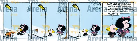 col1759pt TIRA MAFALDA, CÓDIGO ORIGINAL 1759, PORTUGUES, EDIÇÕES MARTINS FONTES.DiálogoLiberdade: Cada vez que chega a conta da luz, meu pai também resolve dar sua opinião sobre o assunto.As tiras da Mafalda, coloridas em português (com gramática atualizada), foram cedidas pela © Martins Editora Livraria Ltda. para licenciamento através da Fotoarena. Foram colorizadas pela editora Glénat.