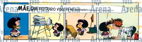 col1781pt TIRA MAFALDA, CÓDIGO ORIGINAL 1781, PORTUGUES, EDIÇÕES MARTINS FONTES.DiálogoMafalda: Mãe, que futuro você vê no movimento pela liberação da mulhnão, nada, esquece.As tiras da Mafalda, coloridas em português (com gramática atualizada), foram cedidas pela © Martins Editora Livraria Ltda. para licenciamento através da Fotoarena. Foram colorizadas pela editora Glénat.