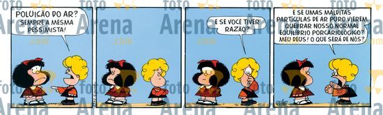 col1792pt TIRA MAFALDA, CÓDIGO ORIGINAL 1792, PORTUGUES, EDIÇÕES MARTINS FONTES.DiálogoSusanita: Poluição do ar? Sempre a mesma pessimista! E se você tiver razão? E se umas malditas partículas de ar puro vierem quebrar nosso normal equilícrio porcariológico? Meu deus! O que será de nós?As tiras da Mafalda, coloridas em português (com gramática atualizada), foram cedidas pela © Martins Editora Livraria Ltda. para licenciamento através da Fotoarena. Foram colorizadas pela editora Glénat.