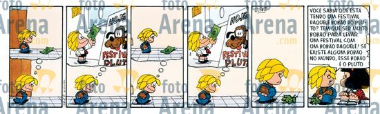 col1827pt TIRA MAFALDA, CÓDIGO ORIGINAL 1827, PORTUGUES, EDIÇÕES MARTINS FONTES.DiálogoMiguelito: Você sabia que está tendo um festival daquele bobão do Pluto? Tem que ser muito bobão para levar um festival com um bobão daquele! Se existe algum bobão no mundo, esse bobão é o Pluto.As tiras da Mafalda, coloridas em português (com gramática atualizada), foram cedidas pela © Martins Editora Livraria Ltda. para licenciamento através da Fotoarena. Foram colorizadas pela editora Glénat.