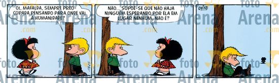 col1845pt TIRA MAFALDA, CÓDIGO ORIGINAL 1845, PORTUGUES, EDIÇÕES MARTINS FONTES.DiálogoFilipe: Oi, Mafalda, sempre preocupada pensando pra onde vai a humanidade?Mafalda: Não... Supõe-se que não haja ninguém esperando por ela em lugar nenhum, não é?As tiras da Mafalda, coloridas em português (com gramática atualizada), foram cedidas pela © Martins Editora Livraria Ltda. para licenciamento através da Fotoarena. Foram colorizadas pela editora Glénat.