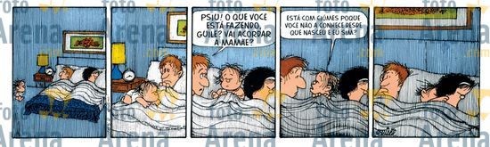 col1852pt TIRA MAFALDA, CÓDIGO ORIGINAL 1852, PORTUGUES, EDIÇÕES MARTINS FONTES.DiálogoPapai: Psiu! O que você está fazendo, Guil? Vai acordar a mamãe?Guile: Está com ciúmes poquê você não a conhece desde que nasceu e eu sim?As tiras da Mafalda, coloridas em português (com gramática atualizada), foram cedidas pela © Martins Editora Livraria Ltda. para licenciamento através da Fotoarena. Foram colorizadas pela editora Glénat.