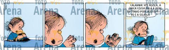 col1880pt TIRA MAFALDA, CÓDIGO ORIGINAL 1880, PORTUGUES, EDIÇÕES MARTINS FONTES.DiálogoGuile: Calamba! Até agola, a única coisa pala a qual eu tenho podê aquisitivo é a sujeila.As tiras da Mafalda, coloridas em português (com gramática atualizada), foram cedidas pela © Martins Editora Livraria Ltda. para licenciamento através da Fotoarena. Foram colorizadas pela editora Glénat.