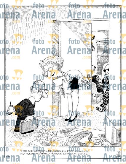 phqpi105sp PÁGINA DE HUMOR, ESPANHOL, QUÉ PRESENTE IMPRESENTABLE, EDICIONES DE LA FLOR.Diálogo- Pide que lo disculpe, pero en este momento no puede recibirlo porque está con gente.