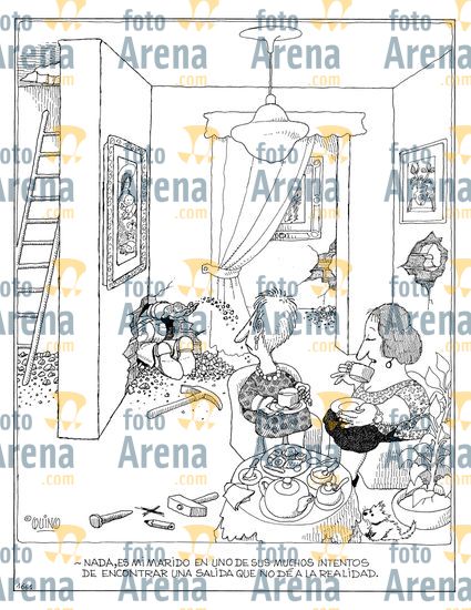 phqpi109sp PÁGINA DE HUMOR, ESPANHOL, QUÉ PRESENTE IMPRESENTABLE, EDICIONES DE LA FLOR.Diálogo- Nada, es mi marido en uno de sus muchos intentos de encontrar una salida que no dé a la realidad.