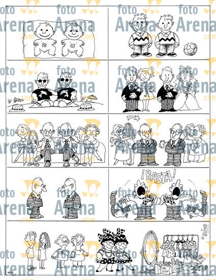 phqpi118sp PÁGINA DE HUMOR, ESPANHOL, QUÉ PRESENTE IMPRESENTABLE, EDICIONES DE LA FLOR.Diálogo- ¡BASTA!Interpretação: Irmãos gêmeos.