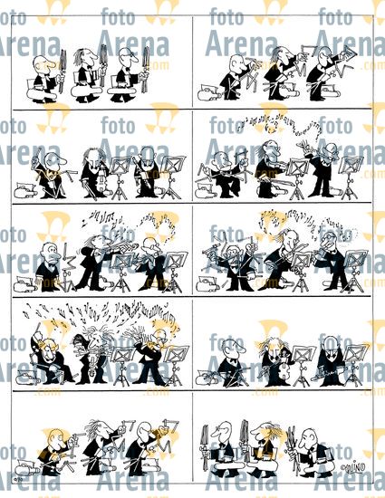 phqpi71sp PÁGINA DE HUMOR, ESPANHOL, QUÉ PRESENTE IMPRESENTABLE, EDICIONES DE LA FLOR.Sem diálogoInterpretação: Trio de músicos.