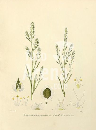alb15275678 Icones, Florae, Germanicae, et, Helveticae, Simul, Pedemontanae, Tirolensis, Istriacae, Dalmaticae, Austriacae, Hungaricae, Transylvanicae, Moravicae, Borussicae, Holsaticae, Belgicae, Hollandicae, Ergo, Mediae, Europae, Lipsiae, F. Hofmeister, 1834-1912, v. 1, 1850, Europe, Pictorial, Works, Plants, The illustration features a botanical study of **Cinchona officinalis**, commonly known as the cinchona tree, which is celebrated for its bark's medicinal properties, particularly in the treatment of malaria. On either side, two vertical representations of the plant showcase its slender stems adorned with narrow, elongated leaves. Detailed diagrams below highlight various parts of the flower, including the floral structure and reproductive components. These illustrations exemplify the delicate beauty and scientific interest of this important species, reflecting the intricate details of botany and the art of plant illustration.