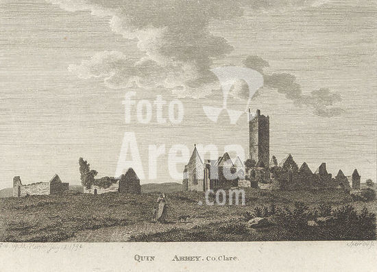 alb15857982 View of the ruins of Quin Abbey, Quin Abbey. Co.Clare (title on object), This print is part of a book., print maker: Sparrow, publisher: M. Hooper, London, 18-Jul-1794, paper, etching, height 153 mm × width 203 mm, print.