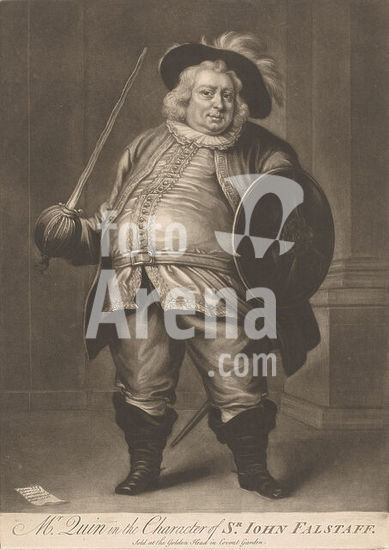 alb15862271 Portrait of James Quin as John Falstaff, Mr. Quin in the Character of Sr. Iohn Falstaff (title on object), James Quin as John Falstaff from Shakespeare's 'Henry IV' or 'The Merry Wives of Windsor'., print maker: James McArdell, after own design by: James McArdell, publisher: James McArdell, London, c. 1745 - 1765, paper, height 352 mm × width 250 mm, print.