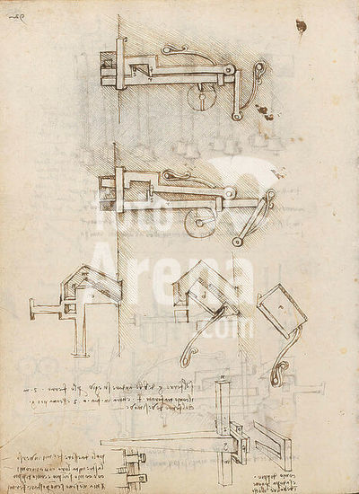 alb4117198 Folio f 123r. Codex Madrid I (Ms. 8937) "Treaty of statics and mechanics", 192 folios with 384 pages. Internal format: 215 x 145 mm. APPLIED MECHANICS (COMPONENTS). APPLIED MECHANICS (MACHINES AND WITS). PRINCIPLES OF MECHANICS, CINEMATICS, DYNAMICS. Museum: BIBLIOTECA NACIONAL DE ESPAÑA, MADRID. Author: LEONARDO DA VINCI.