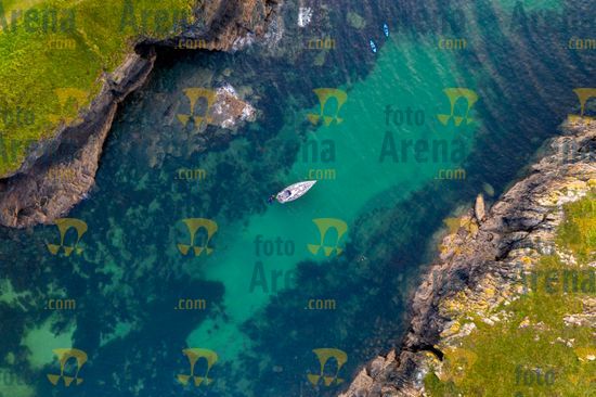 799-4154 Aerial view of a yacht moored in Port Quin, Cornwall, England, United Kingdom, EuropeLegenda da Fotoarena:Aerial view of a yacht moored in Port Quin, Cornwall, England, United Kingdom, Europe