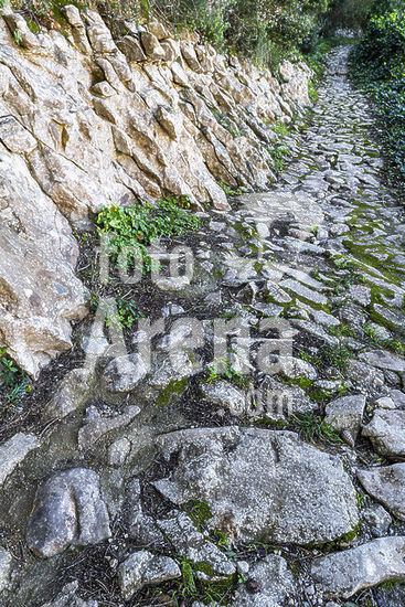 alb19668443 wall and path made of living stone without mortar, Randa, Algaida,Mallorca, Balearic Islands, Spain.
