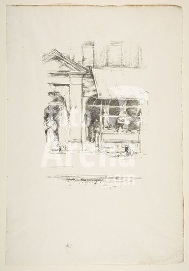 alb3651821 The Butcher's Dog. Artist: James McNeill Whistler (American, Lowell, Massachusetts 1834-1903 London). Dimensions: Image: 7 1/8 × 5 3/16 in. (18.1 × 13.1 cm)Sheet: 12 5/16 x 8 1/2 in. (31.3 x 21.6 cm). Date: 1896. Museum: Metropolitan Museum of Art, New York, USA.