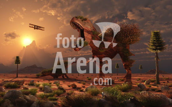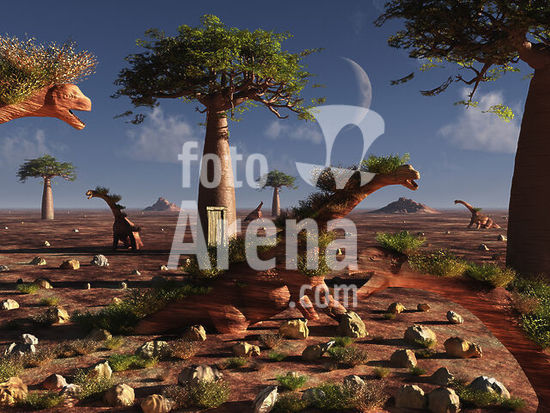 alb3897014 Artist's concept illustrating an amazing sculpture park where all the exhibits are life-size dinosaurs carved out of the local natural rocks, which date back to the real life creatures themselves.