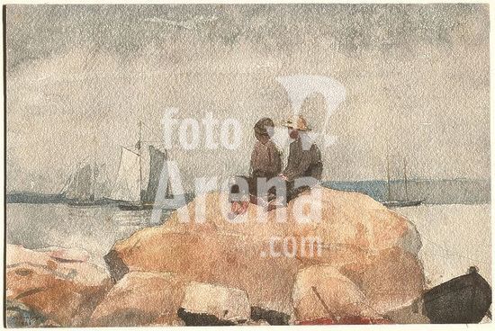 alb4159485 Two Boys Watching Schooners. Winslow Homer; American, 1836-1910. Date: 1880. Dimensions: 227 x 340 mm. Watercolor, with graphite, on moderately thick, rough-textured, ivory wove paper. Origin: United States. Museum: The Chicago Art Institute, USA.