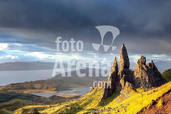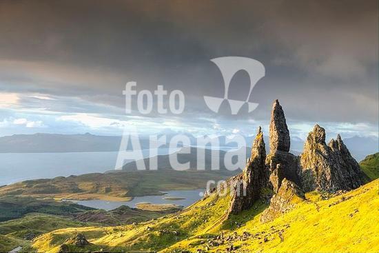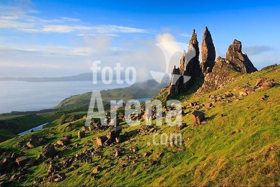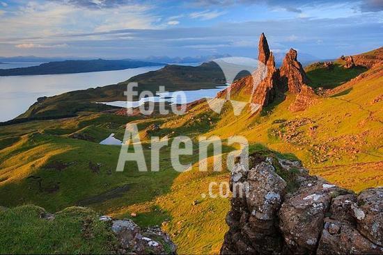 01056860 geography / travel, Great Britain, Scotland, Highlands, Isle of Skye, view from the Storr, Old man of Storr rocks, used as a film location in Ridley Scott's Prometheus
