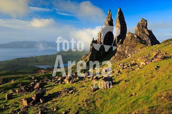 01056857 geography / travel, Great Britain, Scotland, Highlands, Isle of Skye, view from the Storr, Old man of Storr rocks, used as a film location in Ridley Scott's Prometheus